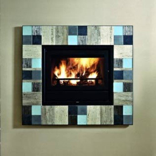 Комбинация кусочков керамики, стекла и натурального камня разных оттенков превращают широкое мозаичное обрамление этой модели в настоящий шедевр каминного искусства.
